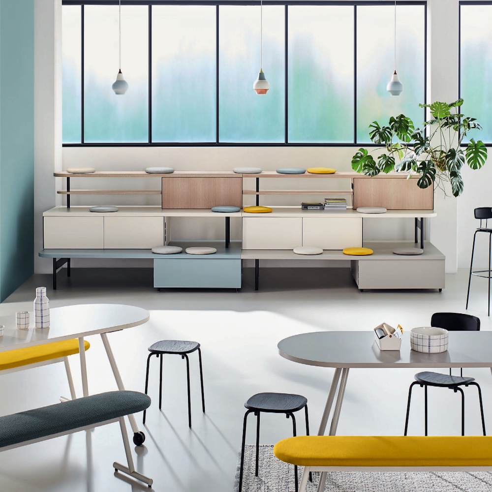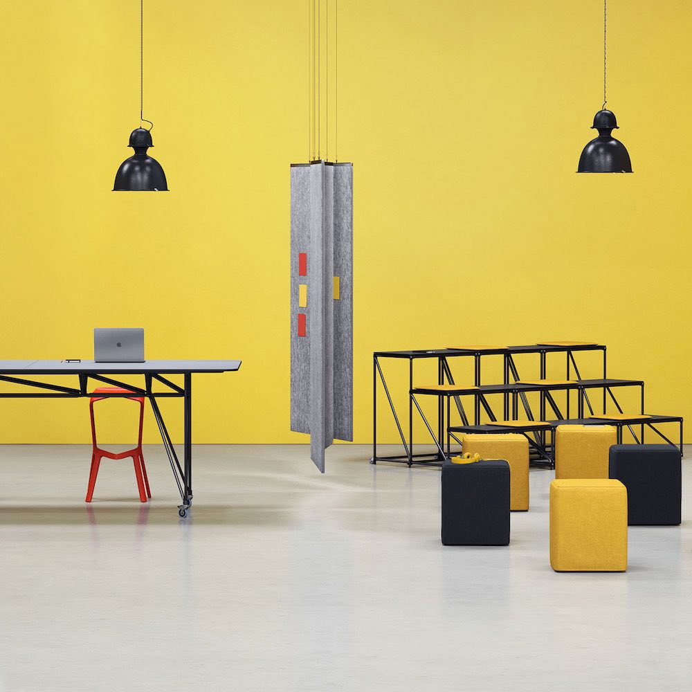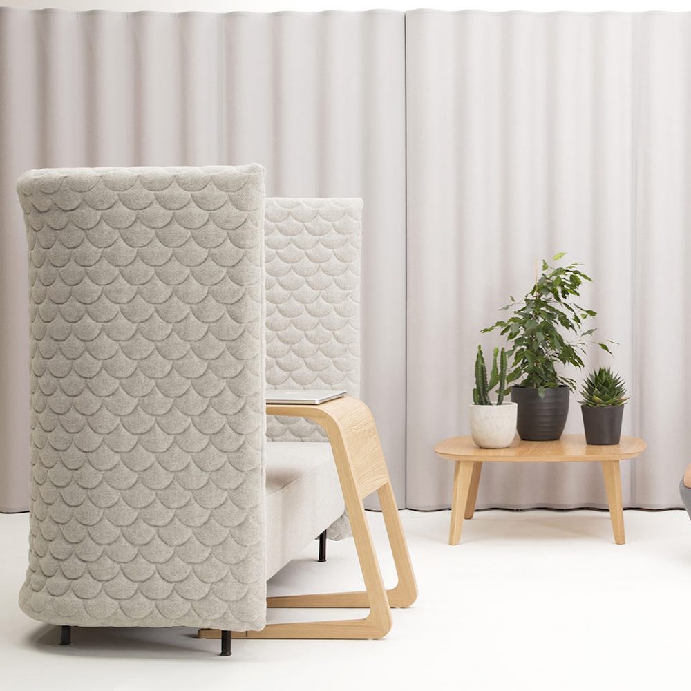 Die Produkte von naughtOne sind wie geschaffen für agiles Arbeiten: Stellt man Cloud Quilt und Riley Laptoptische zusammen, entstehen moderne Kurzzeitarbeitsplätze, die akustisch von der Büro-Hektik drum herum abschirmen. Auch für kurze Kreativpausen vor dem Meetingbereich geeignet!