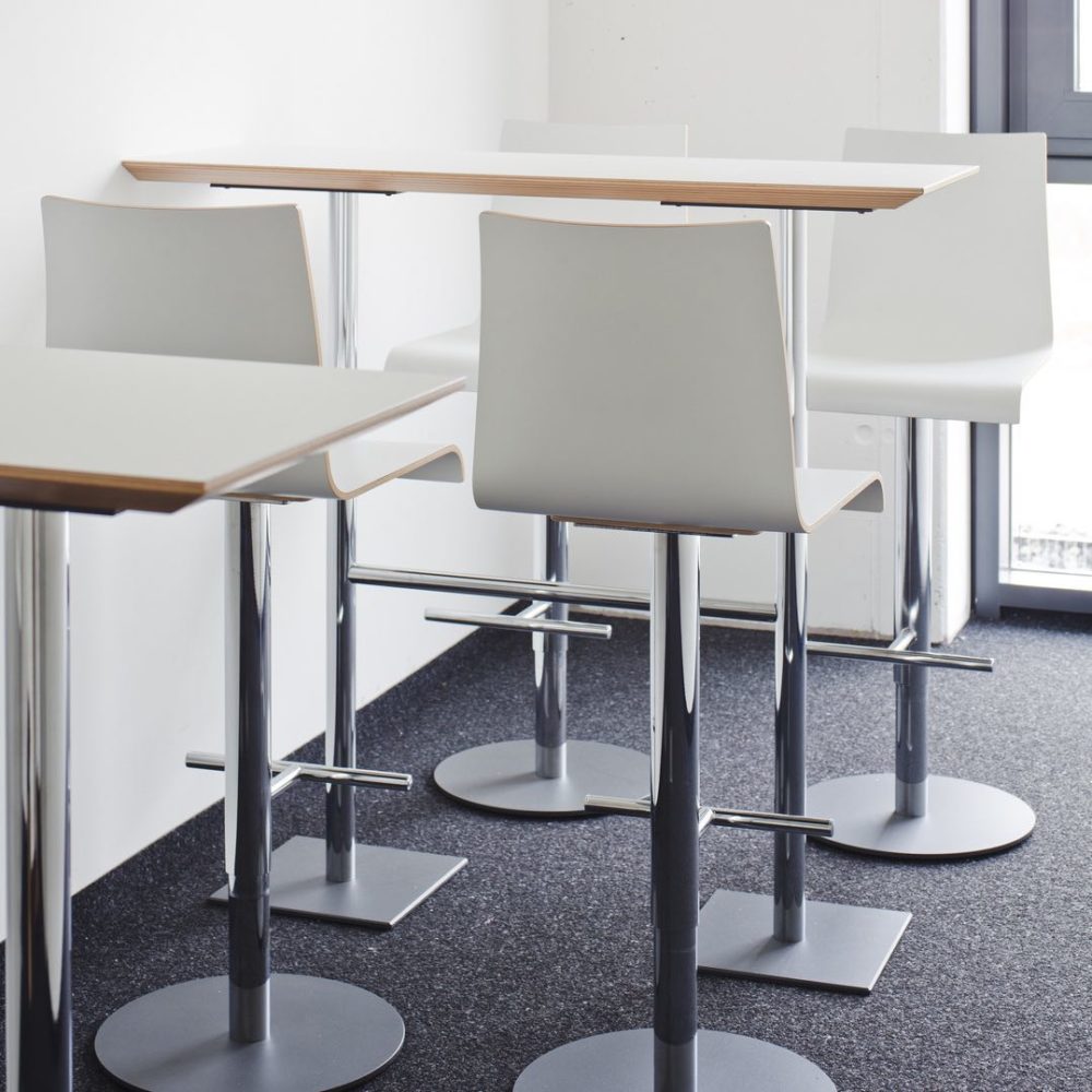 Stehtische dienen nicht nur kreativen und kollaborativen Prozessen, sondern geben einen informellen Rahmen für wichtige Gespräche. Die Serie we_talk von Brunner stellt durch sein nüchternes, aber wertiges Design Seriosität trotz entspannter Sitzform her. Mit und ohne Hocker ein Klassiker für kurze Stehmeetings.