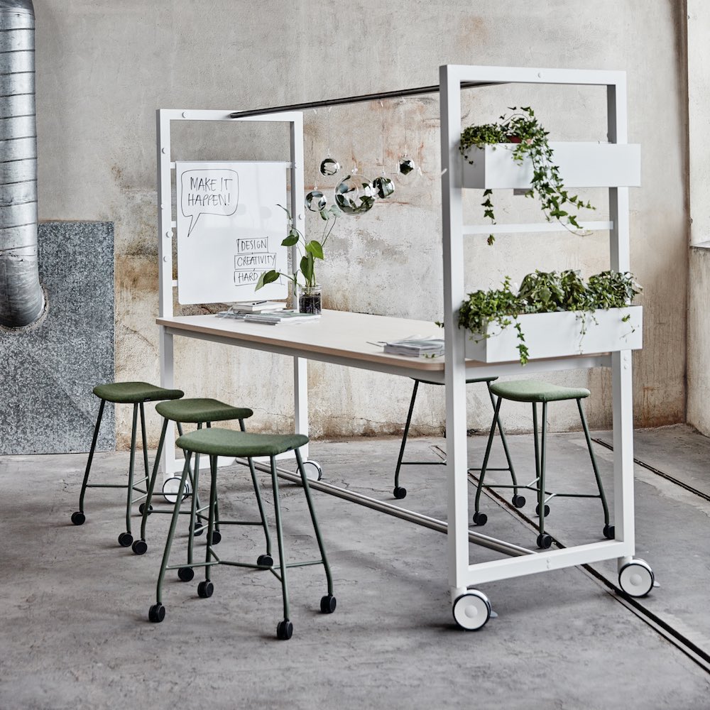 Wir sind große Fans von Lintex. Das Wood mobile Whiteboard des Designers Christian Halleröd funktioniert als Magnet-Pinnwand, Raumtrenner und Sichtschutz in einem. Um temporäre Besprechungsräume zu schaffen, kann das rollbare Design auch durch Monitore und Flipcharts ergänzt werden. Ideal für kleine Büros mit wenig separaten Räumen!