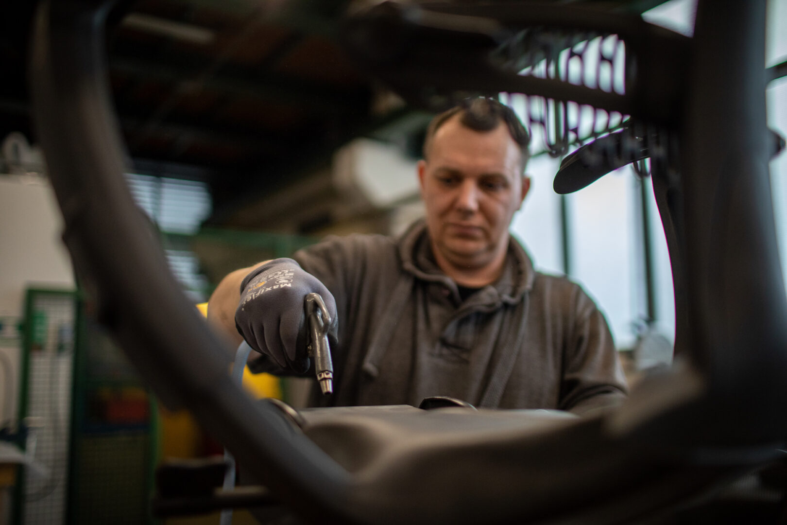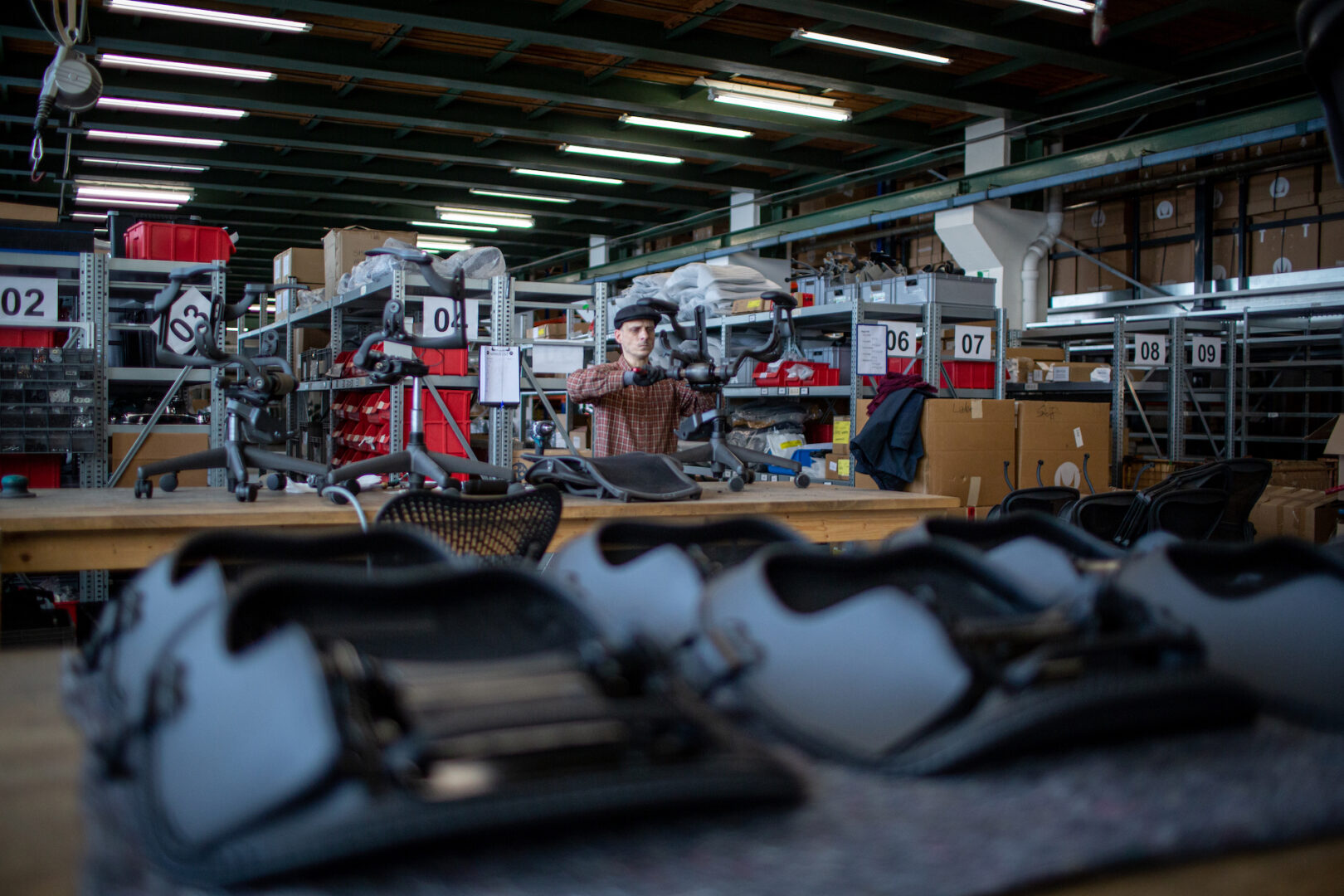 Get a glimpse into our work environment in Berlin Lankwitz. Discover our office space with attached warehouse and workshop for office chair repairs.
