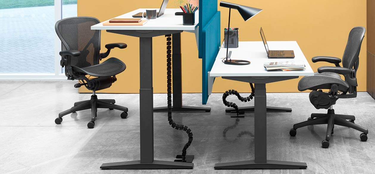 Die Sorge um eine ergonomische Sitzhaltung indes können dir nur höhenverstellbare Schreibtische bzw. Sitz-Steh-Schreibtische abnehmen. Sie sind das Beste, was du während der Bildschirmarbeit für deinen Rücken tun kannst! Die elektromotorisch verstellbaren Schreibtische lassen sich in Sekundenschnelle einfach in ihrer Höhe verstellen – und durch Memory-Funktion zwischen deinen Lieblingshöhen wechseln. Höhenverstellbare Schreibtische sind eine Investition in deine Gesundheit, denn durch den Wechsel zwischen Sitzen und Stehen kehrt mehr Bewegung am Arbeitsplatz ein und du wirst so langfristig deine Wirbelsäule und Bandscheiben schonen. Erwiesenermaßen sorgt der Positionswechsel nicht nur für Entlastung, sondern auch für Produktivität: So wie ein Spaziergang neuen Elan schafft, kann auch der Wechsel vom Sitzen ins Stehen neue Ideen befeuern. Wenn dir das Investment zu groß ist, kannst du vielleicht deine alte Tischplatte verwenden und auf ein höhenverstellbares Schreibtischgestell setzen?